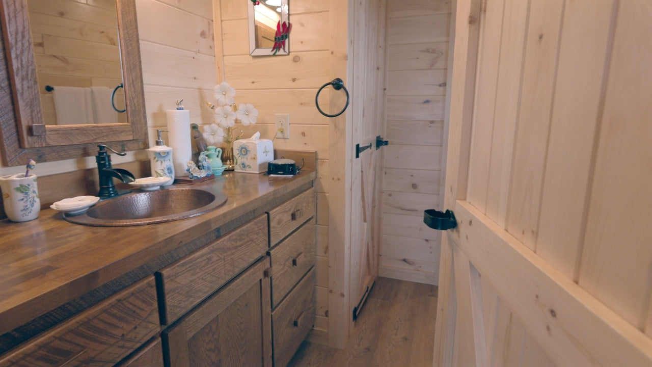 - Knotty Pine Interior Paneling, sanded smooth and sealed for a rustic yet refined aesthetic