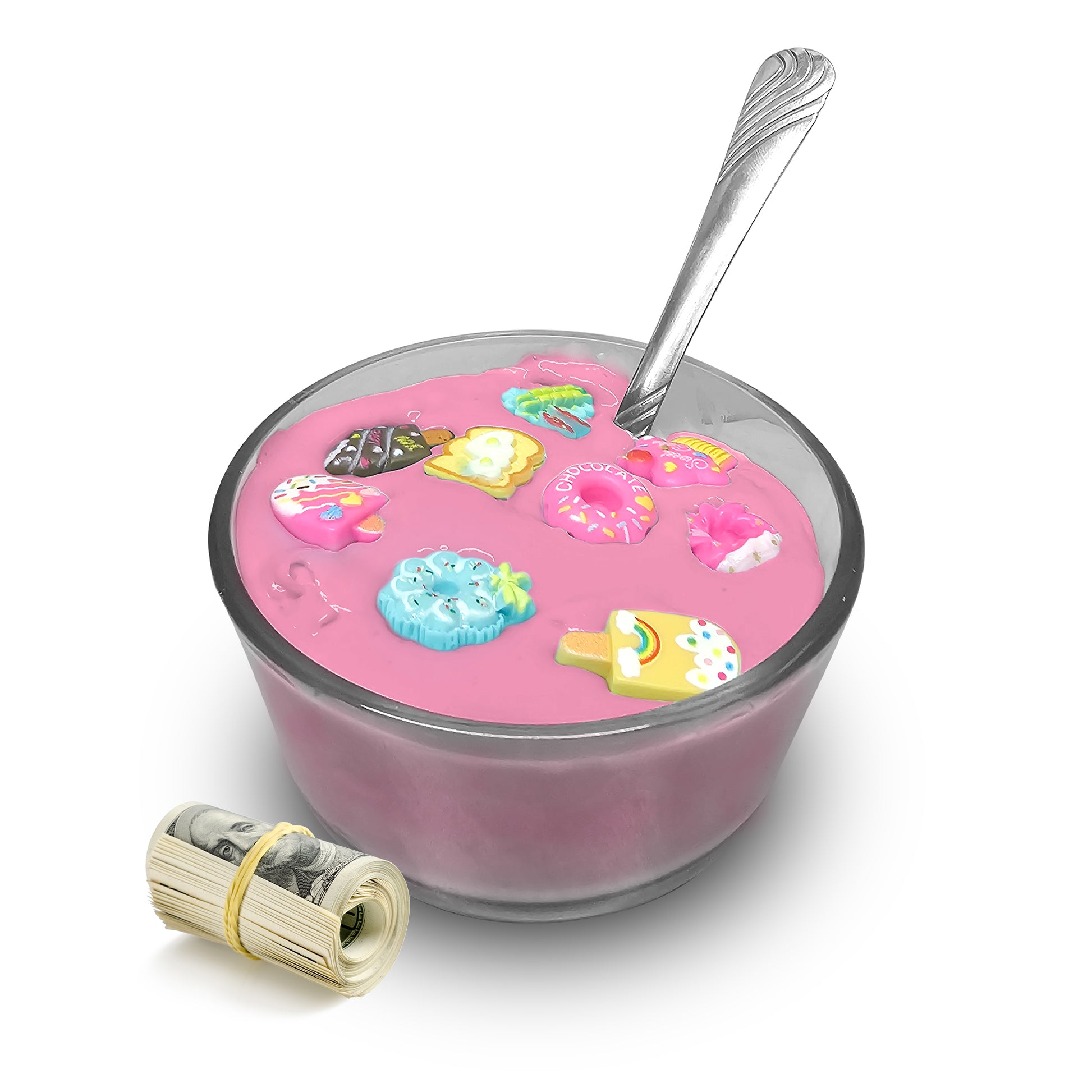 Packaged in a reusable glass cereal bowl with a matching spoon, this Funfetti Delight slime offers more than just a soft, stretchy texture. Every bowl holds a **real $2 bill** inside, with randomly selected bowls containing cash prizes up to **$2,500**, adding an exciting twist to this slime experience! Embrace the delicious scent, enjoy the vibrant colors, and let the thrill of cash prizes make Funfetti Delight your new favorite!