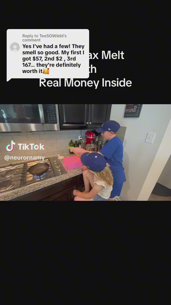 Each World's Largest Baseball Hat Cash Wax Melt contains surprises such as real cash, authentic gold nuggets, or a blend of both, along with a minimum of a genuine $2 bill inside. Randomized melts may even hold cash and gold nugget prizes reaching up to $2500!