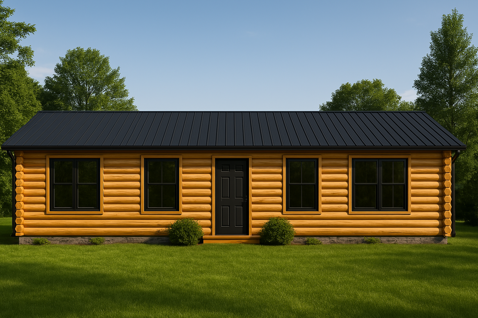 🔹 Pre-stacked log corners for a classic rustic cabin feel
