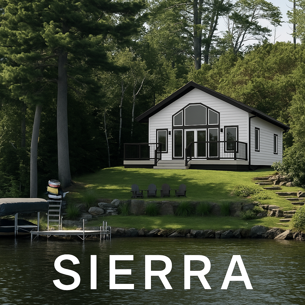 The Sierra Crest House Kit offers 1,064 sq ft of living space with 2 bedrooms and 1 bathroom. Featuring large windows throughout, this home is designed to maximize natural light, creating a bright and welcoming interior. Its modern yet simple layout is perfect for those seeking comfortable, spacious living.