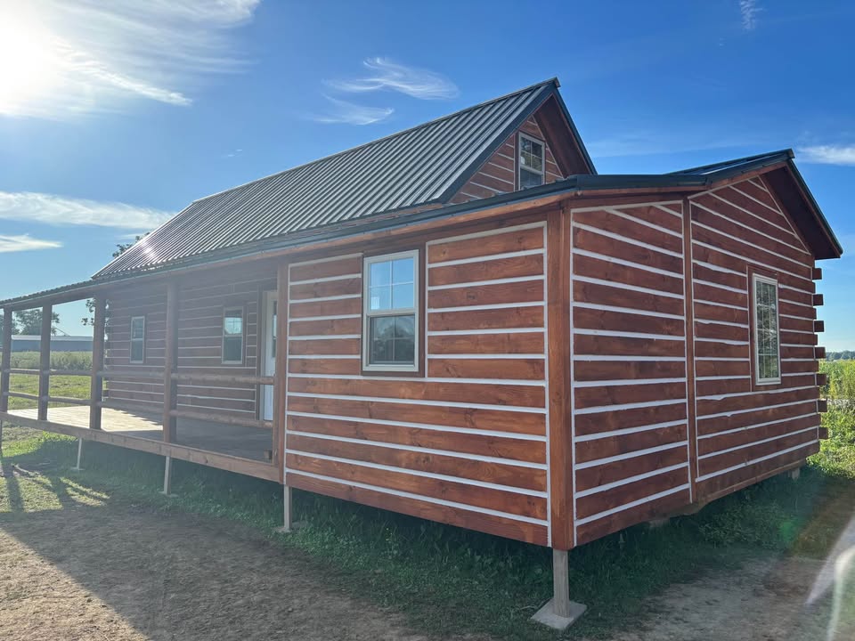 - **Hinge System:** Both the porch and roof feature a hinge system for easy transportation. Once on-site, we reassemble the porch and roof, ensuring your cabin is ready for use.