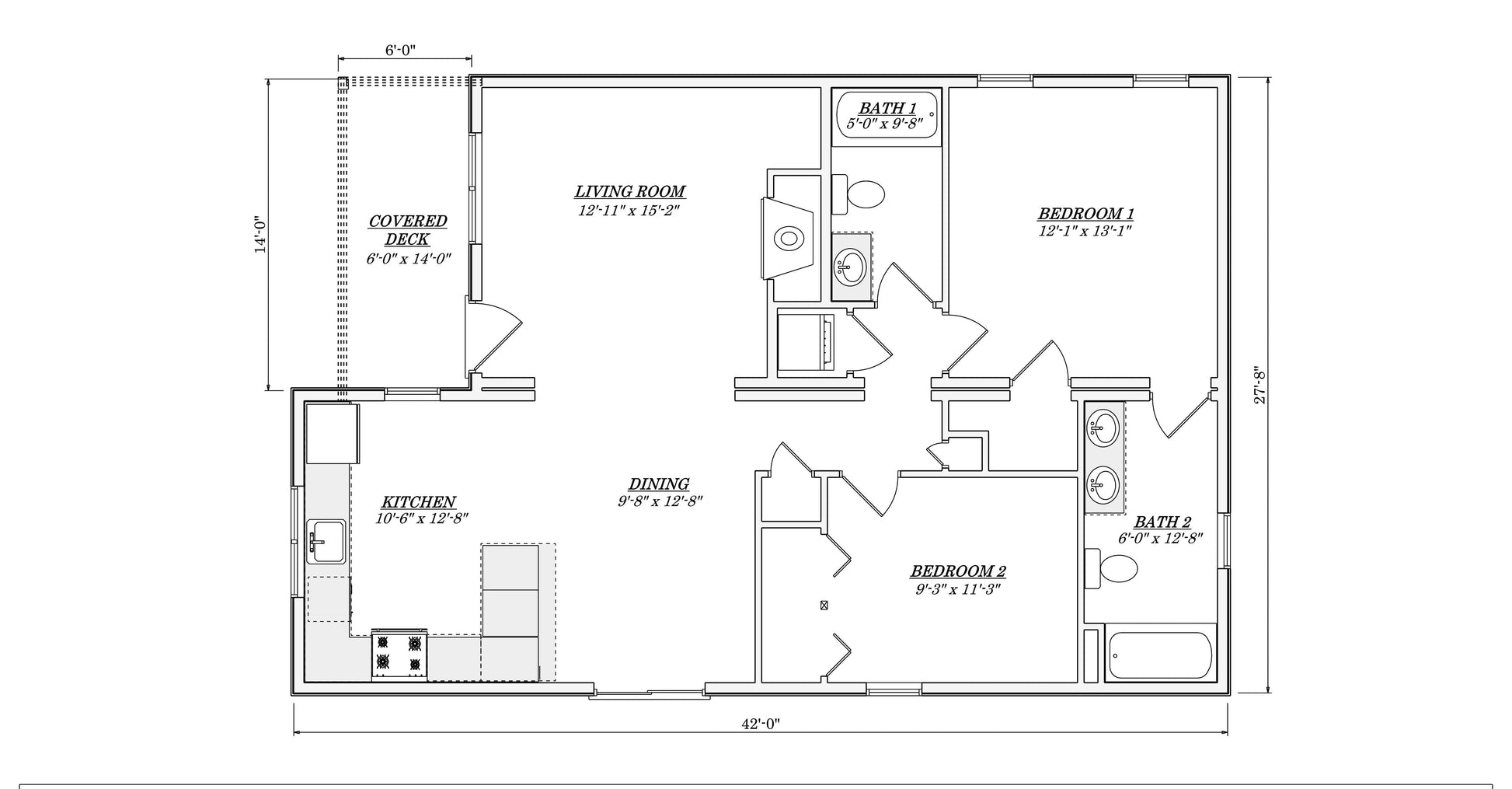 27’ 8” x 42’ with 6’ x 14’ Lean-To Porch