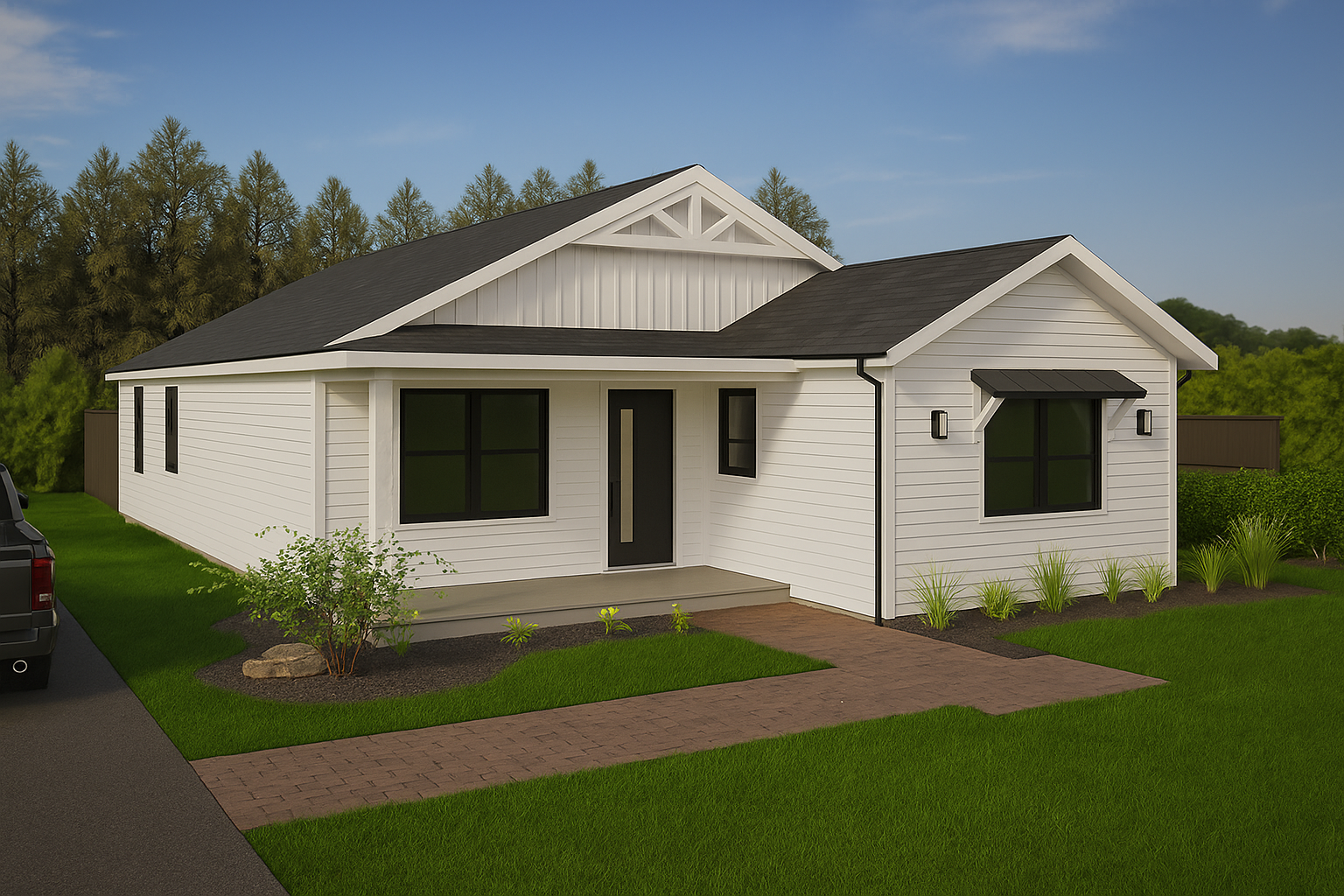 The Farmhouse Charm is a modern, modular cabin that combines timeless design with thoughtful functionality. With over 1,100 square feet of living space, two bedrooms, and two bathrooms, it’s perfectly sized for comfortable family living or as a premium rental property. Every detail is engineered to residential code standards, delivering a home that’s as safe and durable as it is beautiful.