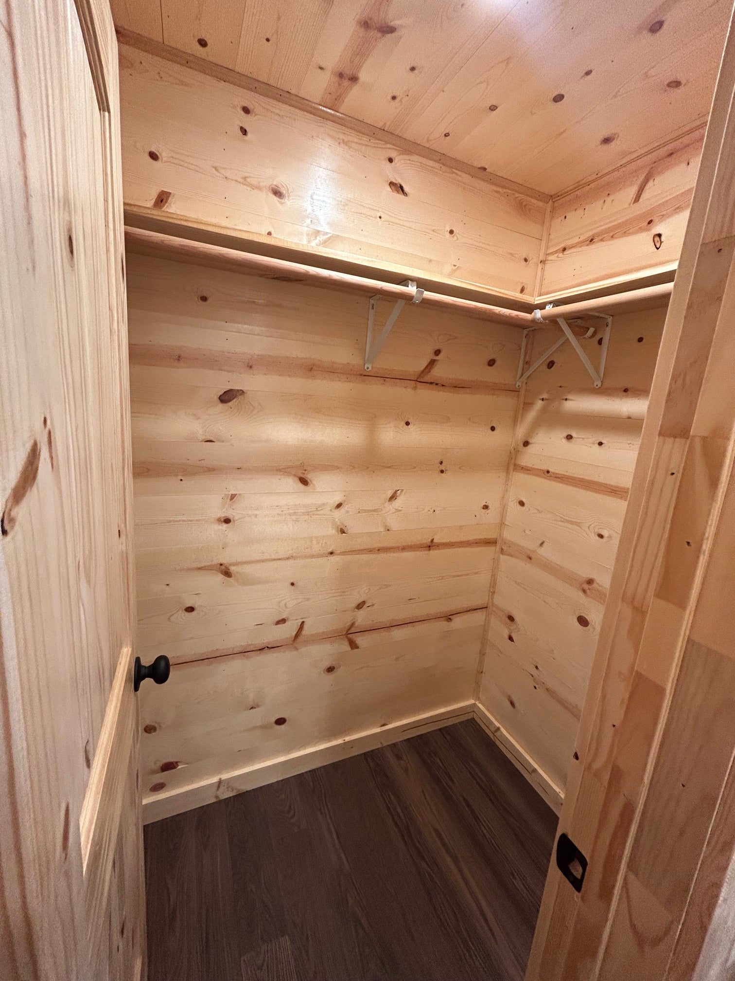 Wall and Ceiling Finish: Ponderosa Pine walls and ceiling with clear coat finish